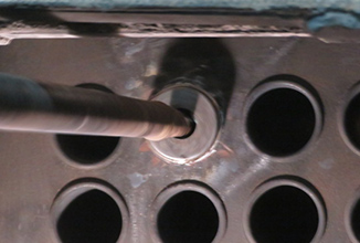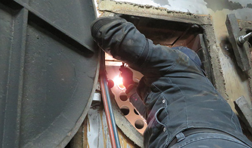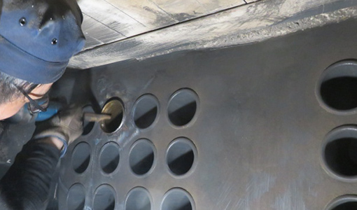 木屑焚き煙管式ボイラーとは、木屑などの木質バイオマスを燃料として、煙管内に熱を伝導させて蒸気を生成するボイラーの一種です。円筒形のボイラー本体内に煙管が配置され、木屑を燃焼させることで煙管内の水を加熱し、蒸気を発生させます。今回はその煙管の取替え作業でした。